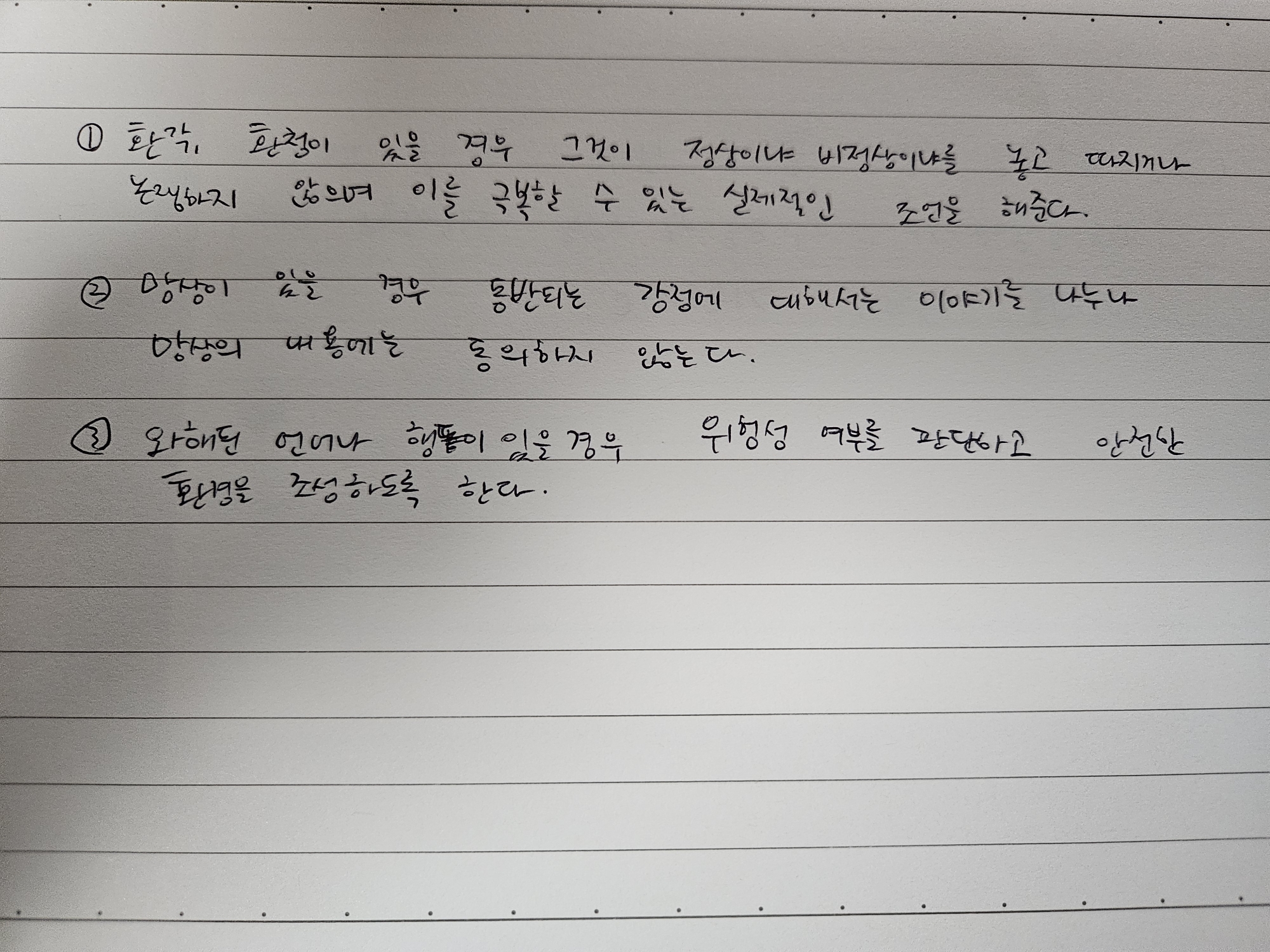 3)와해된 언어나 행동이 있을 경우 위험성 여부를 판단하고 안전한 환경을 조성하도록 한다.