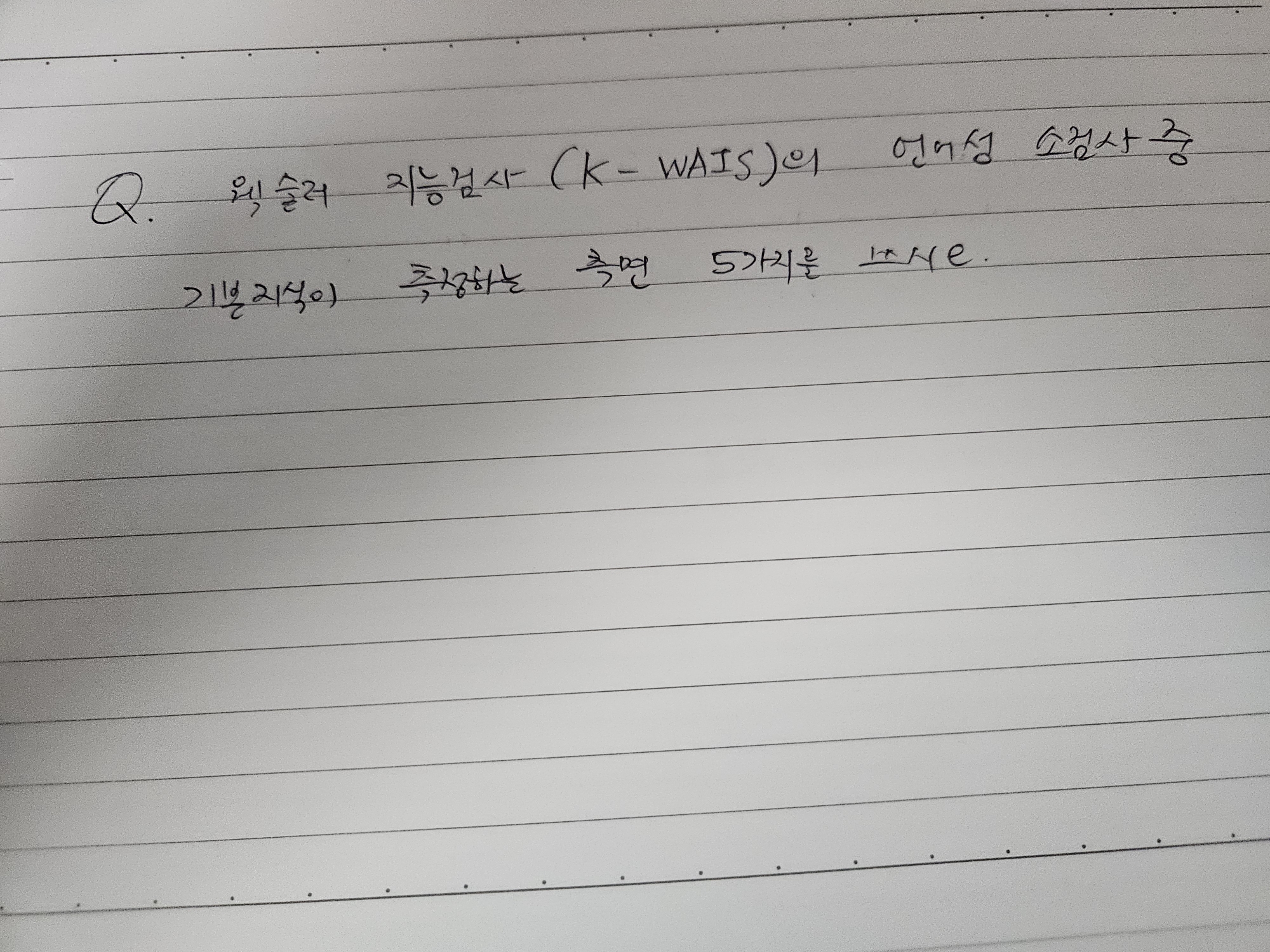 3. 웩슬러 지능검사(K-WAIS)의 언어성 소검사 중 기본지식이 측정하는 측면 5가지를 쓰시오.