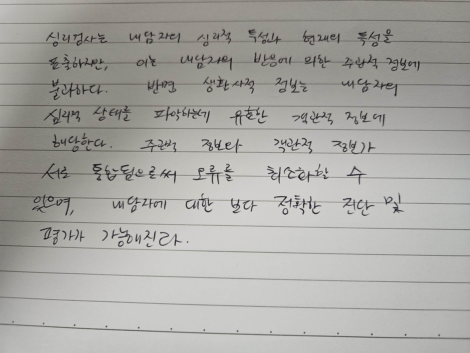 -단점: 통계적 접근에 비해 신뢰성이 떨어진다. 임상가의 주관적 편견이 개입될 수 있다.