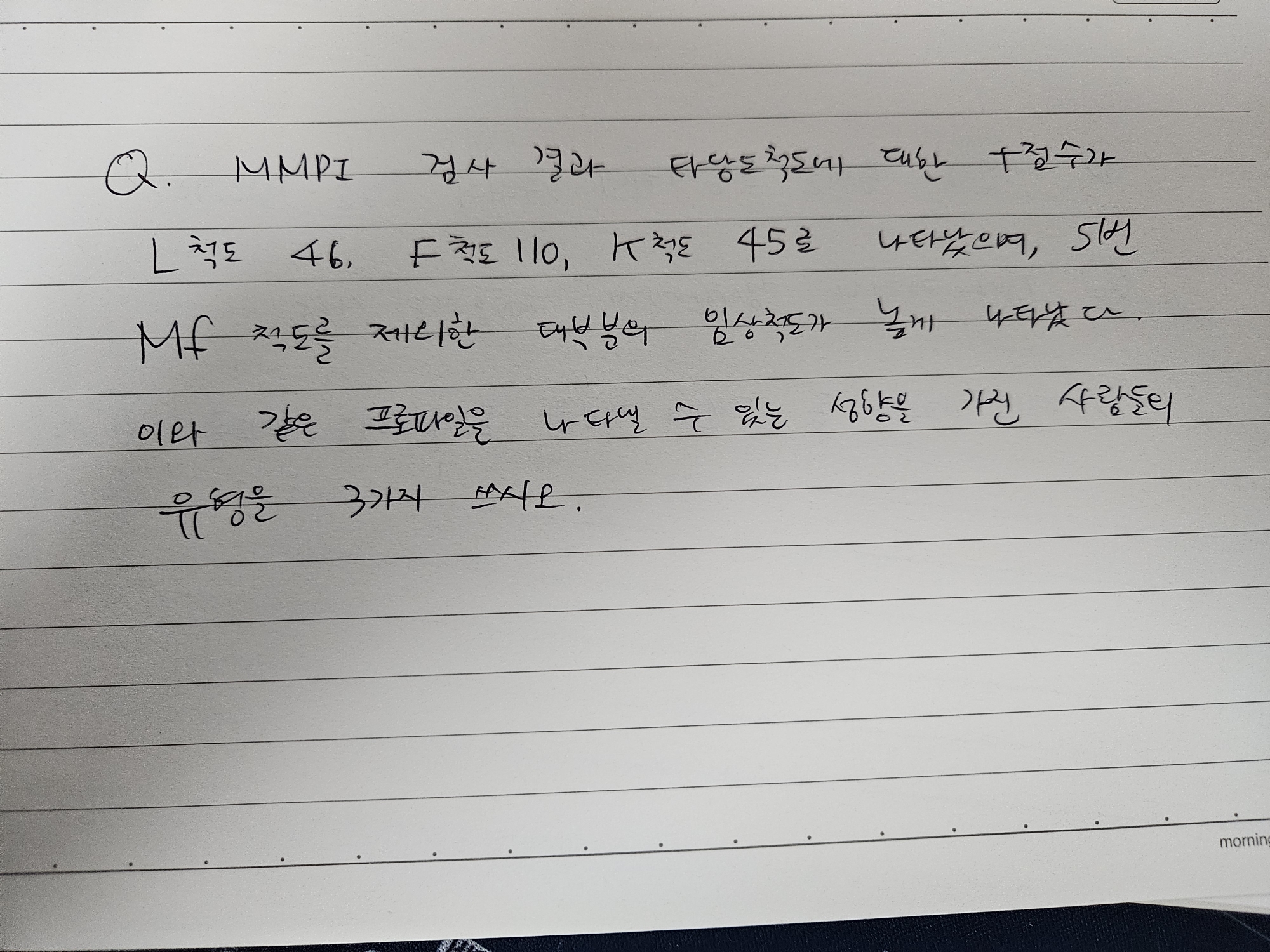 | 임상심리사 2급 실기 하루에 5문제 26 (0) | 2024.04.06 |